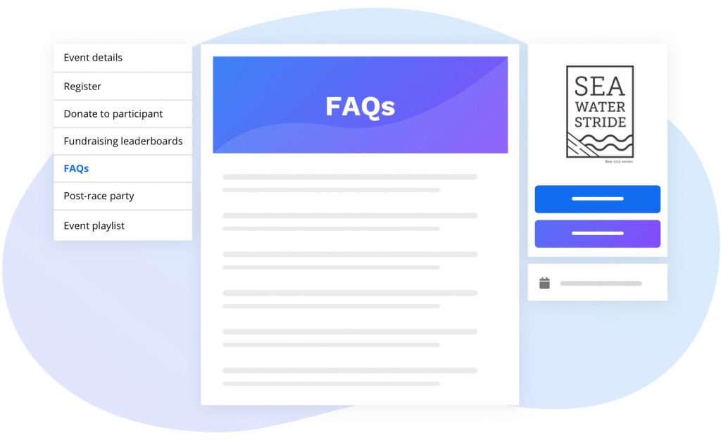 These pages can be beneficial for engaging non-participants because the button to register is displayed on every page. This can encourage people to register as they are reading about your event. You can also include other CTAs (call-to-actions) such as “Donate now” or “Volunteer” to display under your logo on each page.