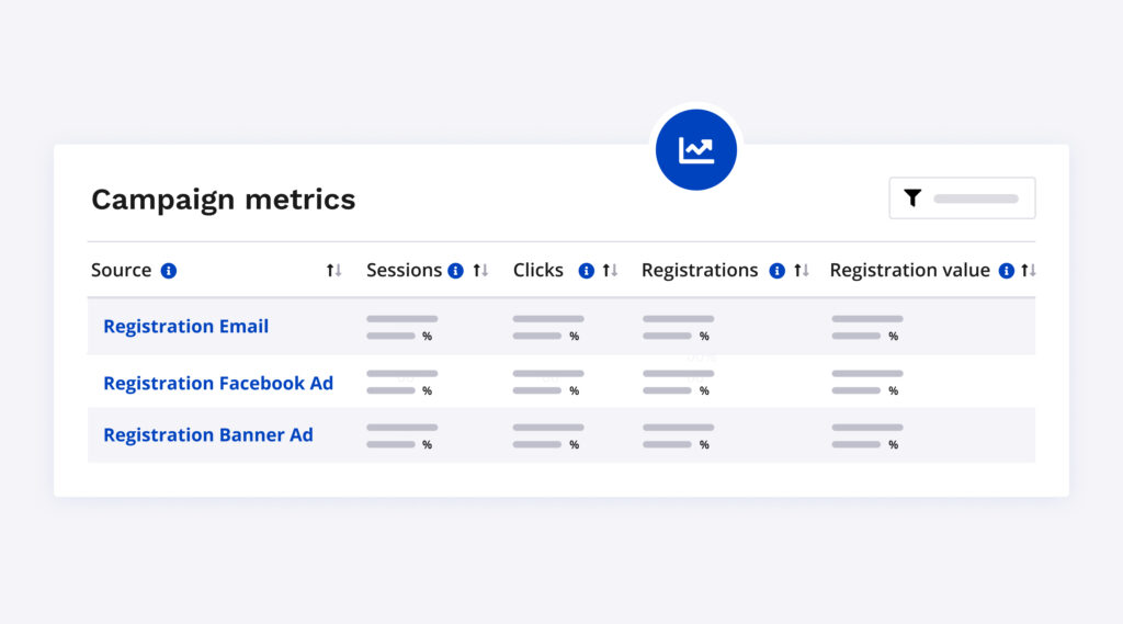 Once the form is completed, you can copy and use the generated link to track referral sources from ads and other websites! To keep up with the progress of your campaigns, you can visit the campaign metrics page. For each campaign, you can see sessions, clicks, registrations, registration value, donations, donation value, store value & total revenue. You can also filter your results by campaign name, source, or date range. These filters are a great way to easily compare campaign progress and determine which source is generating the most value for your event!